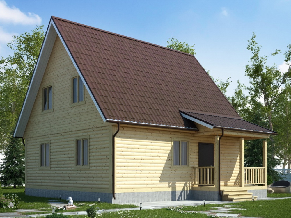 При заказе дома можно подобрать определенный вид кровли. Крышу можно сделать двускатной, четырехскатной и вальмовой. Двухскатная считается самой востребованной у малометражных построек.