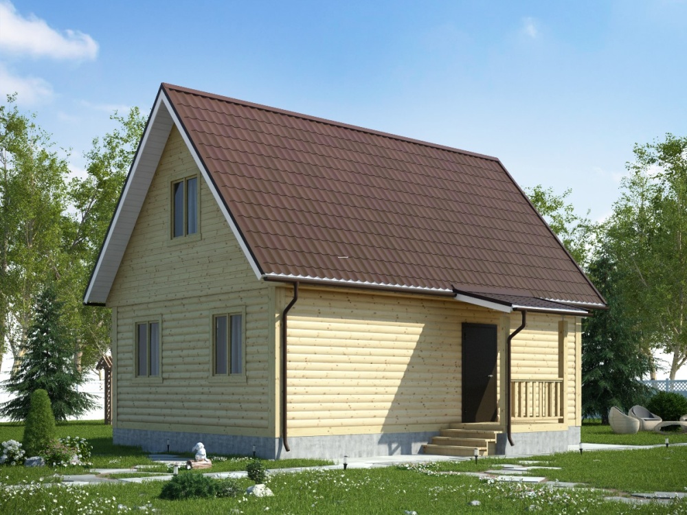 При заказе дома можно подобрать определенный вид кровли. Крышу можно сделать двускатной, четырехскатной и вальмовой. Двухскатная считается самой востребованной у малометражных построек.