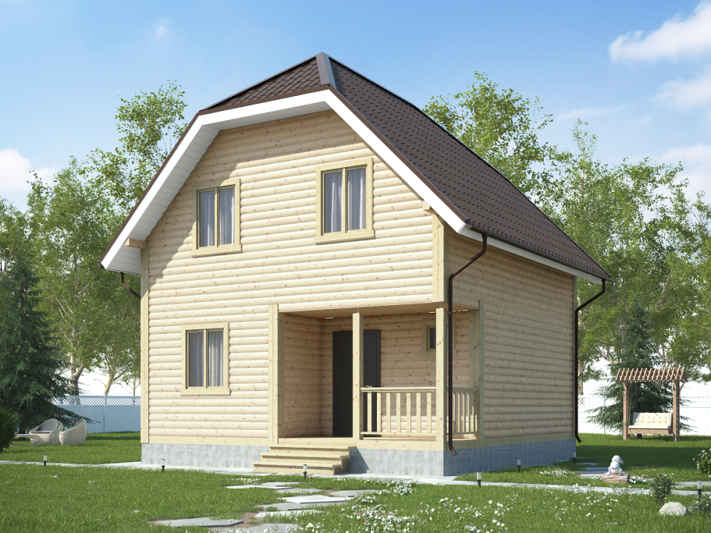 При заказе дома можно подобрать определенный вид кровли. Крышу можно сделать двускатной, четырехскатной и вальмовой. Двухскатная считается самой востребованной у малометражных построек.